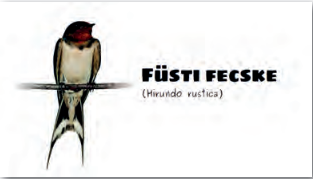 Az azonos szerepű feliratok (a példában a fecskék magyar, illetve tudományos neve) készüljenek egyforma betűtípussal és -mérettel!