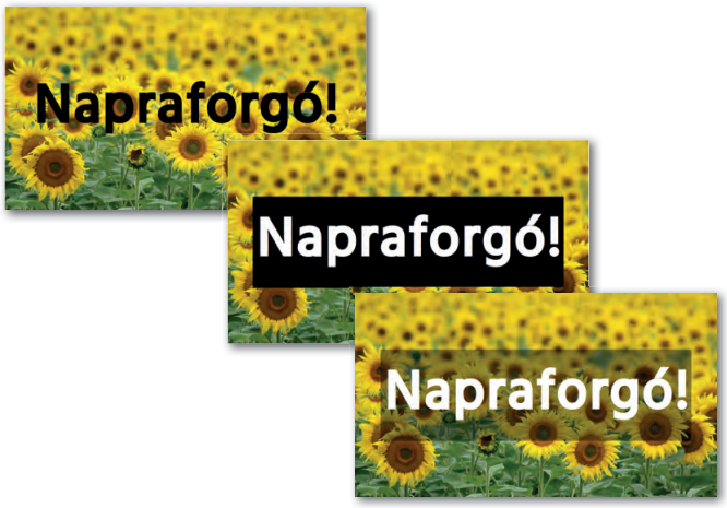 Ilyen esetekben megadhatjuk a szövegdoboz kitöltésének színét. Ha az egyszínű háttér túl sokat takar ki a képből, beállíthatunk átlátszó hátteret is.