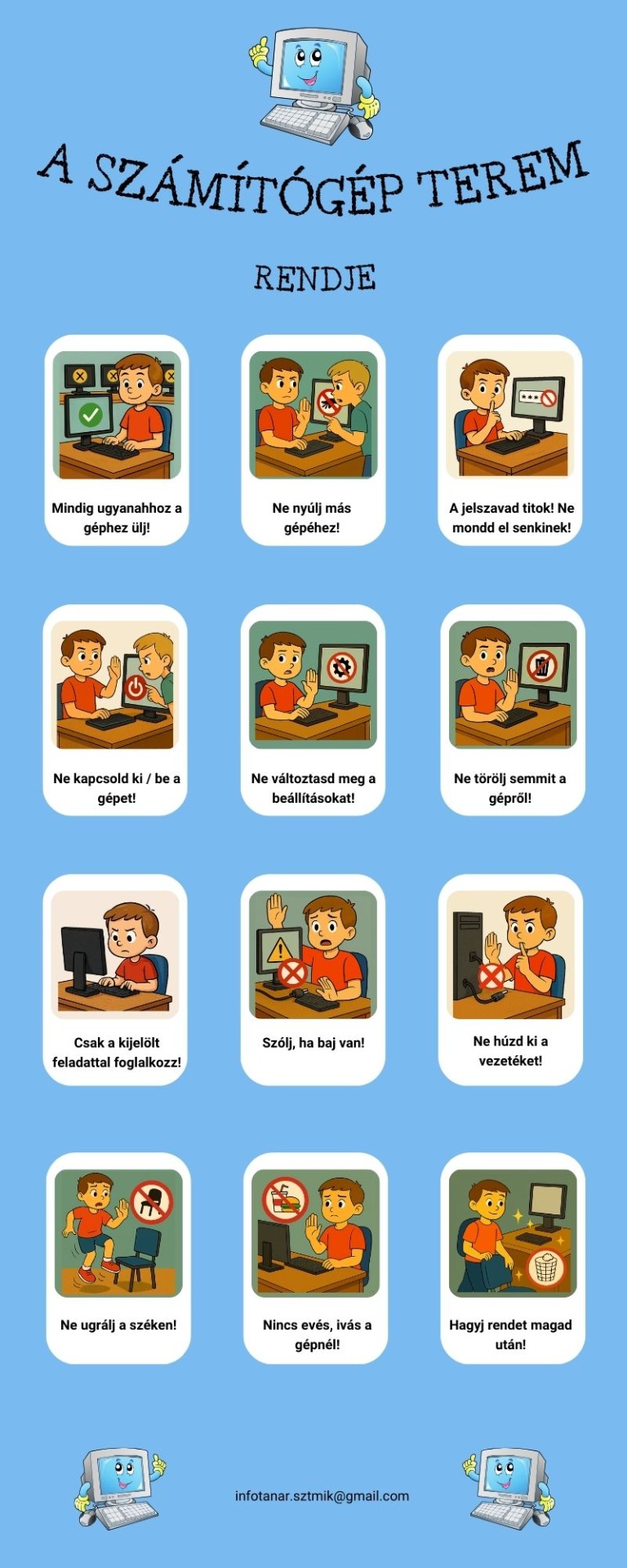 A számítógép terem rendje